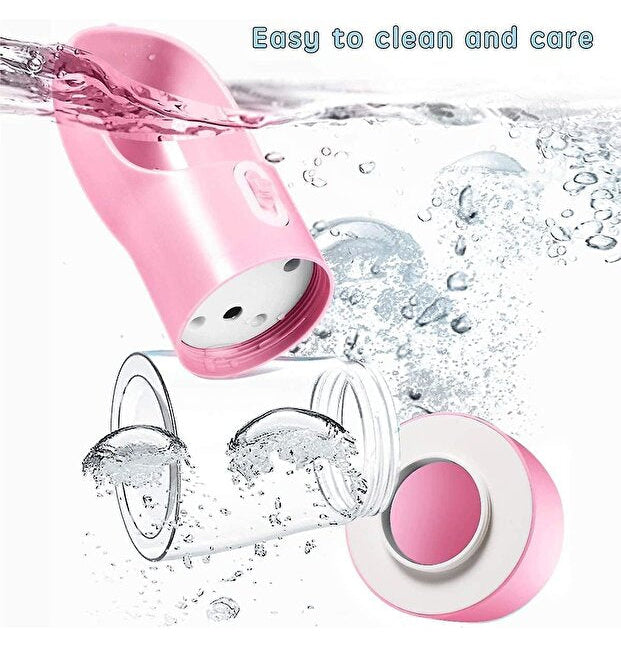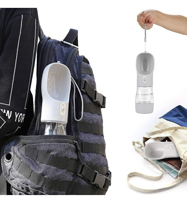 Bu portatif köpek su kabı, evcil hayvanınızın hareket halindeyken beslenmesini sağlamak için 600 ml'lik bir su şişesi ve 100 g'lık bir mama kabına sahiptir. Yerleşik silikon sızdırmazlık halkası ve çifte su geçirmez ve sızdırmaz tasarımı sayesinde, çantanıza veya arabanıza su veya yiyecek dökülmesi konusunda endişelenmenize gerek yok.