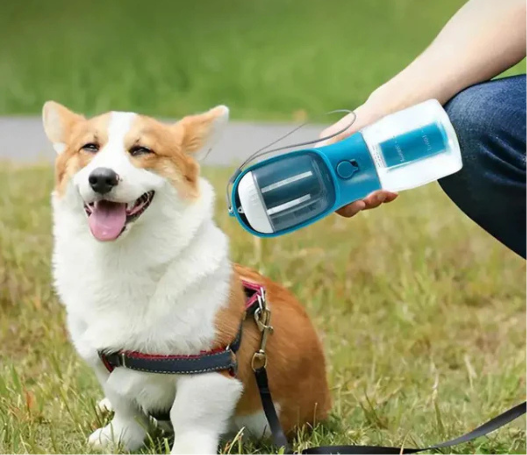 Bu portatif köpek su kabı, bir su şişesinden daha fazlasını sağlayan 3'ü 1 arada bir tasarıma sahiptir. Ayrıca üstte bir yemek kabı ve altta bir kaka torbası kabı bulunur. Seyahat ederken, yürüyüş yaparken veya kamp yaparken size ve köpeğinize kolaylık sağlar.